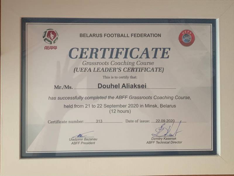 На этой неделе наш наставник Алексей Довгель прошел курс обучения АБФФ для получения тренерской лицензии UEFA категории "D".