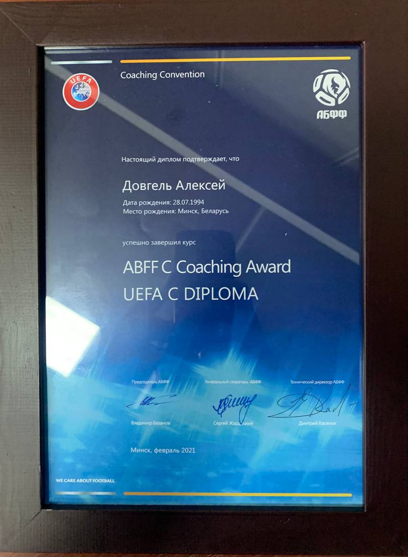 НАШ АЛЕКСЕЙ ДОВГЕЛЬ СТАЛ ОБЛАДАТЕЛЕМ ТРЕНЕРСКОЙ КАТЕГОРИИ UEFA «С»!