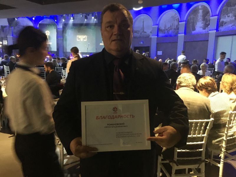 В числе приглашенных на это знаковое мероприятие был и руководитель минской "Фортуны" Сергей Романовский. Отметим, что Сергей Владимирович стал не просто гостем праздника. АБФФ выразила ему свою официальную благодарность "За вклад в развитие детско-юношеского футбола в Республике Беларусь".